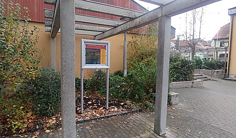 Wo finde ich das Staunfenster? Im Ökumenischen Zentrum Lengfeld, Am Schlossgarten 2-4, kurz vor der Brücke über die Kürnach rechts findest du das Staunfenster. Dort kannst du vieles lesen, direkt oder online (also immer gleich einen QR-Scanner mitnehmen).