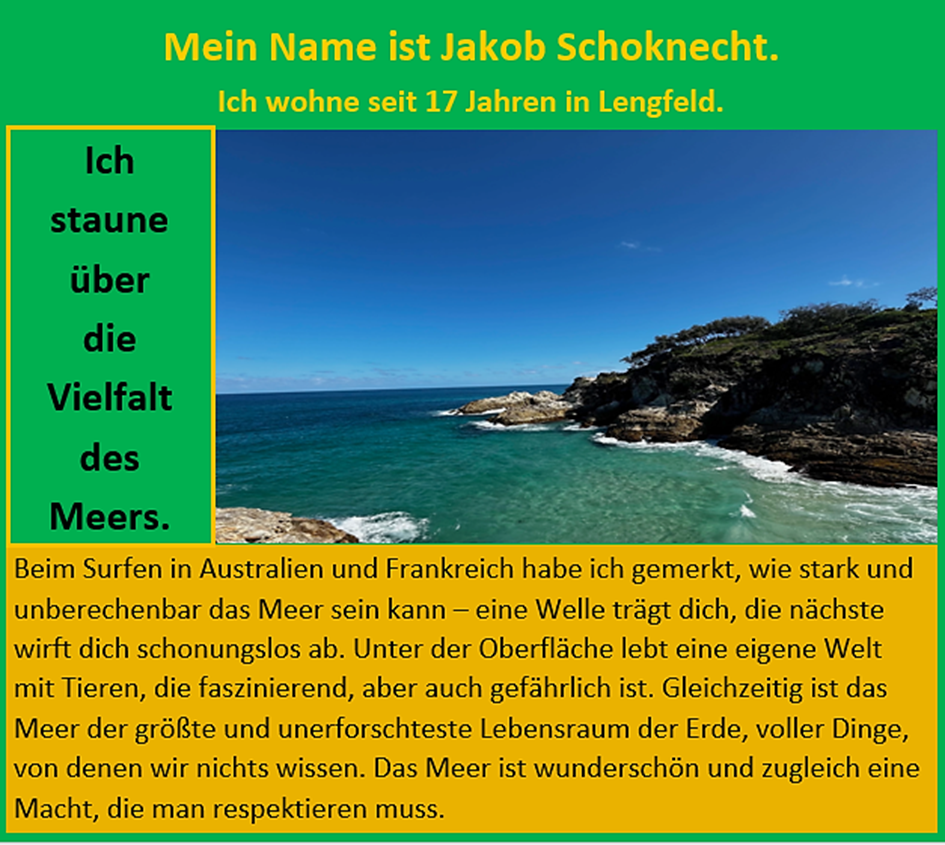 In Lengfeld staune ich darüber, wie schnell man mitten im Trubel der Stadt sein kann, im Alltag zwischen Menschen und Verkehr. Gleichzeitig ist man zuhause aber direkt in der Natur, umgeben von Grün und Feldern. Ich finde es erstaunlich, wie beides hier so nah zusammenliegt.