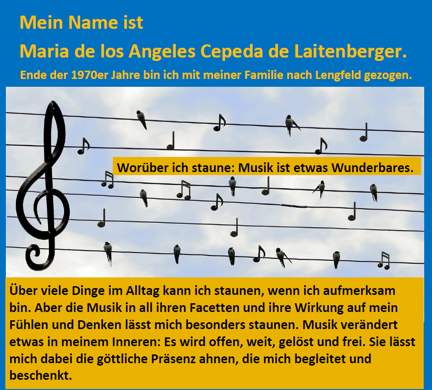 Ich fühle mich wohl hier. Der Ort hat eine gute Infrastruktur, man bekommt fast alles, was man braucht, und es ist auch sehr nahe zur Stadt. Das Kürnachtal mit viel Grün mitten im Dorf und die Sportmöglichkeiten sind für Familien sehr wertvoll. Ich bin in Spanien geboren und aufgewachsen und habe über die Jahre viele nette und freundliche Menschen kennengelernt, die mich in Lengfeld heimisch fühlen lassen. Ich staune immer wieder beim Spazierengehen oberhalb des Friedhofs, sozusagen auf den Hügeln von Lengfeld, über die weiten Wege und den tollen Panoramablick ringsherum, wo ich oft wundervolle Abendstimmungen erleben darf.